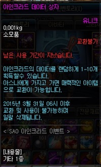 - 아인크라드 던전 클리어 화면에서 골드카드 선택 시 획득되는 아인크라드 데이터 상자