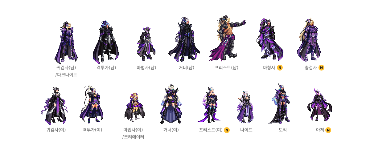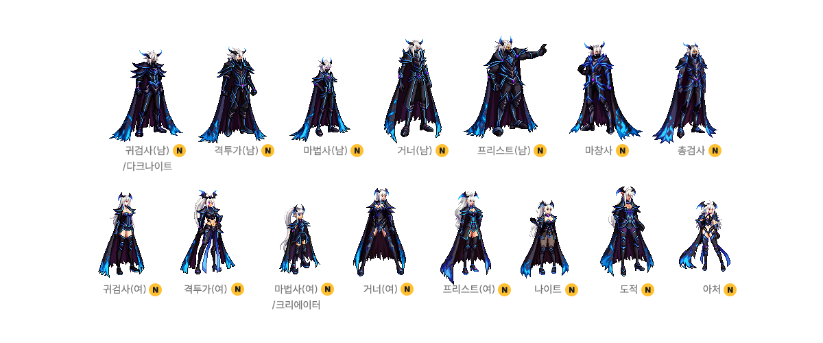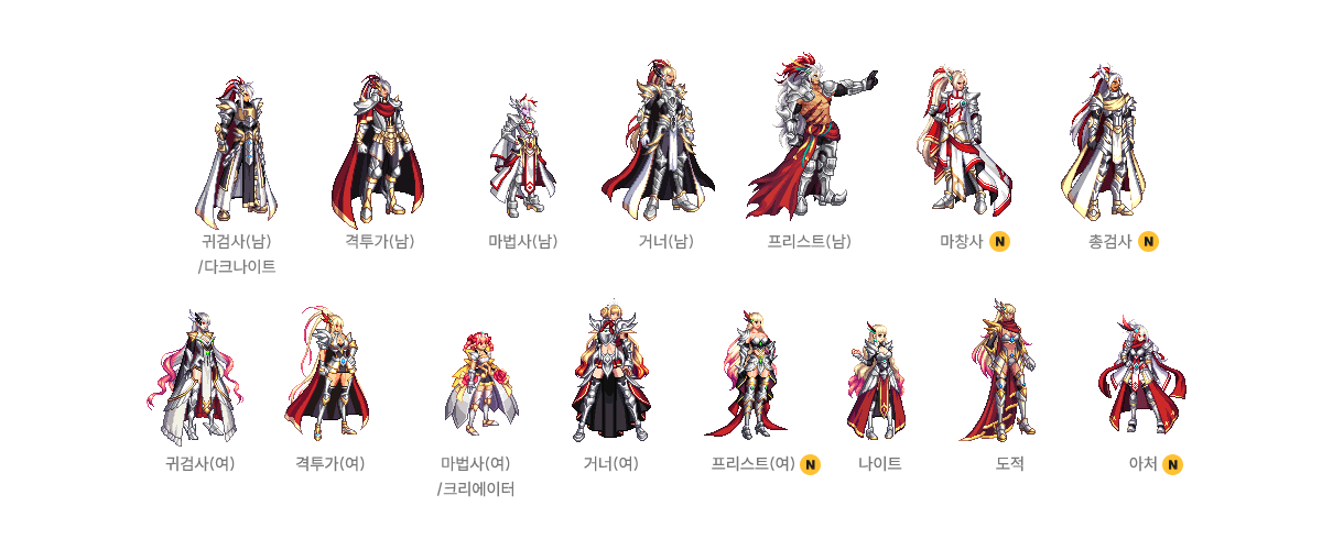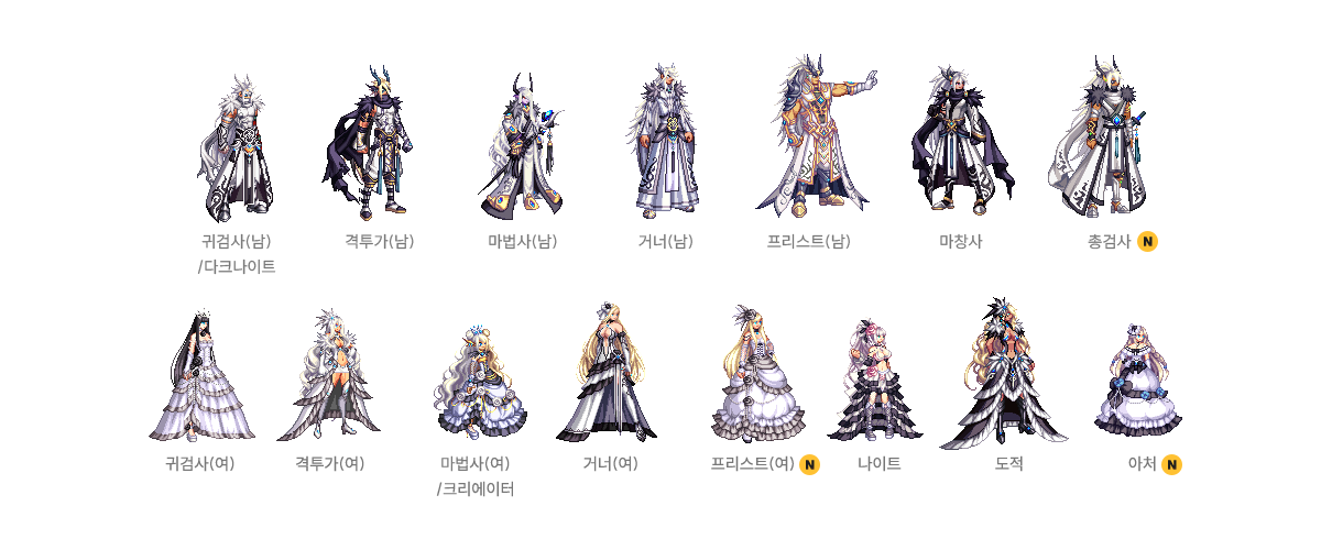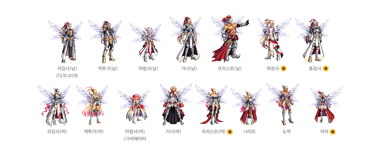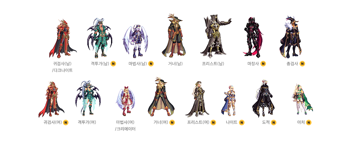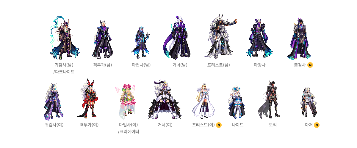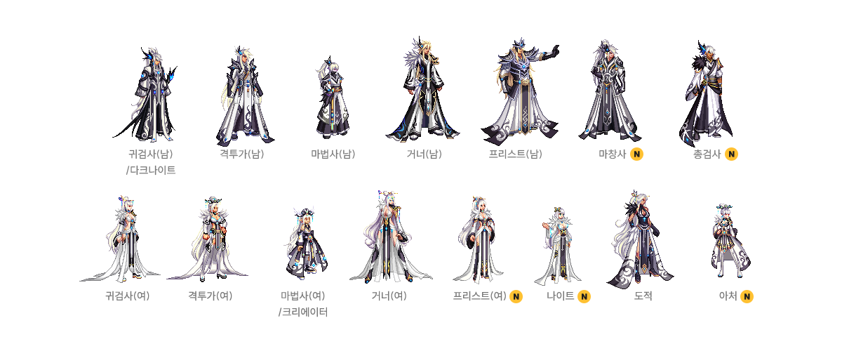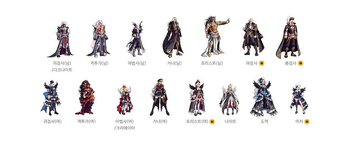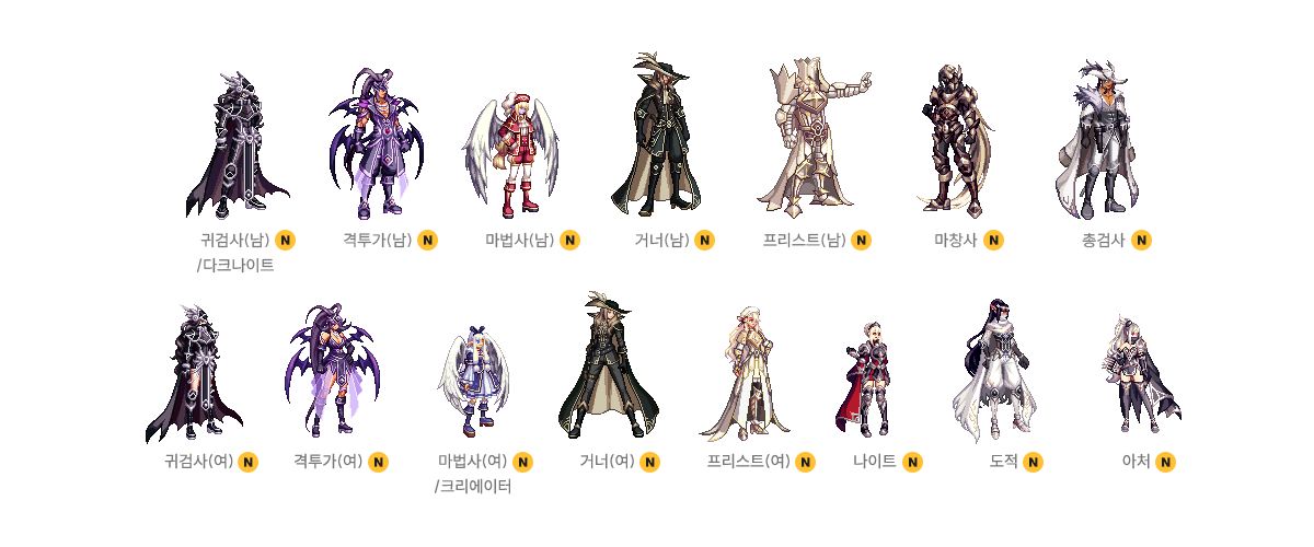 귀검사(남), 격투가(여), 거너(남), 마법사(여), 프리스트(남) - A/B 타입