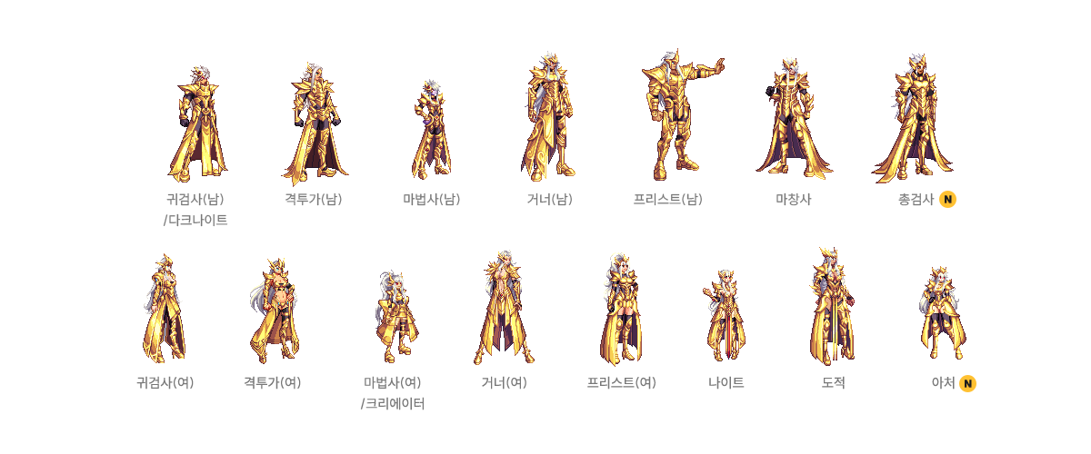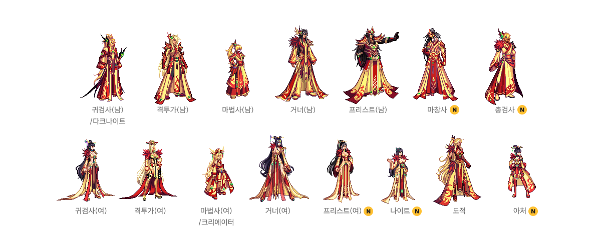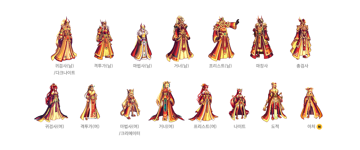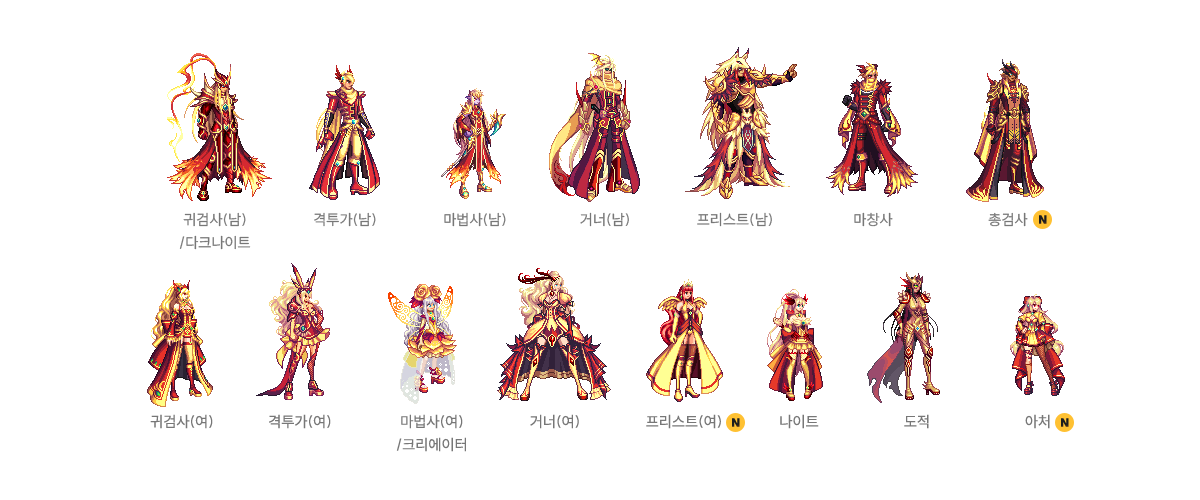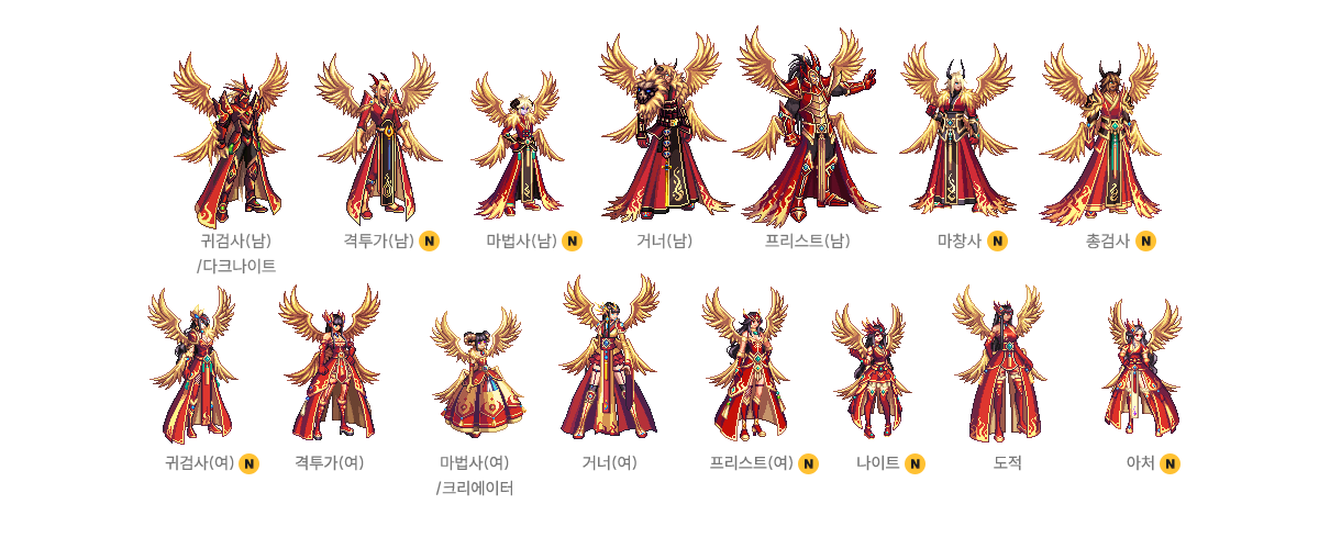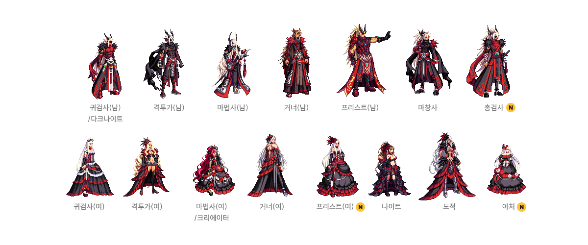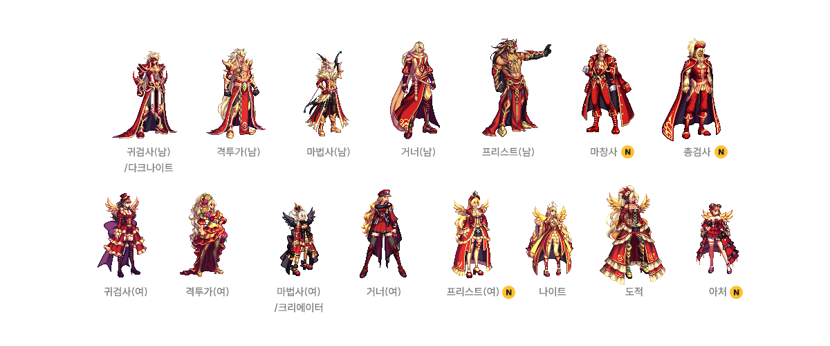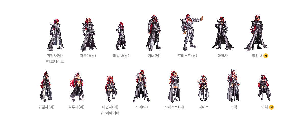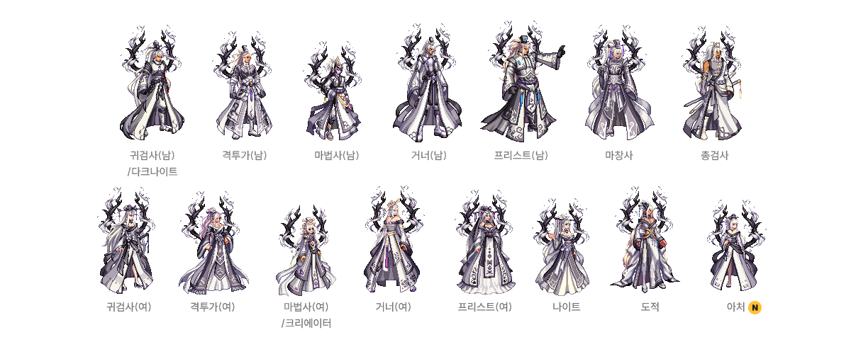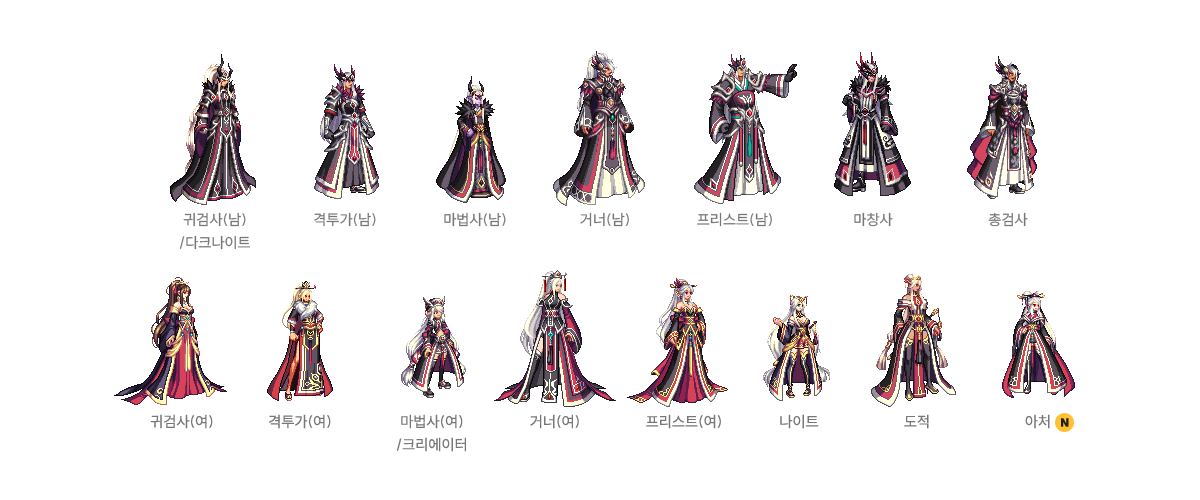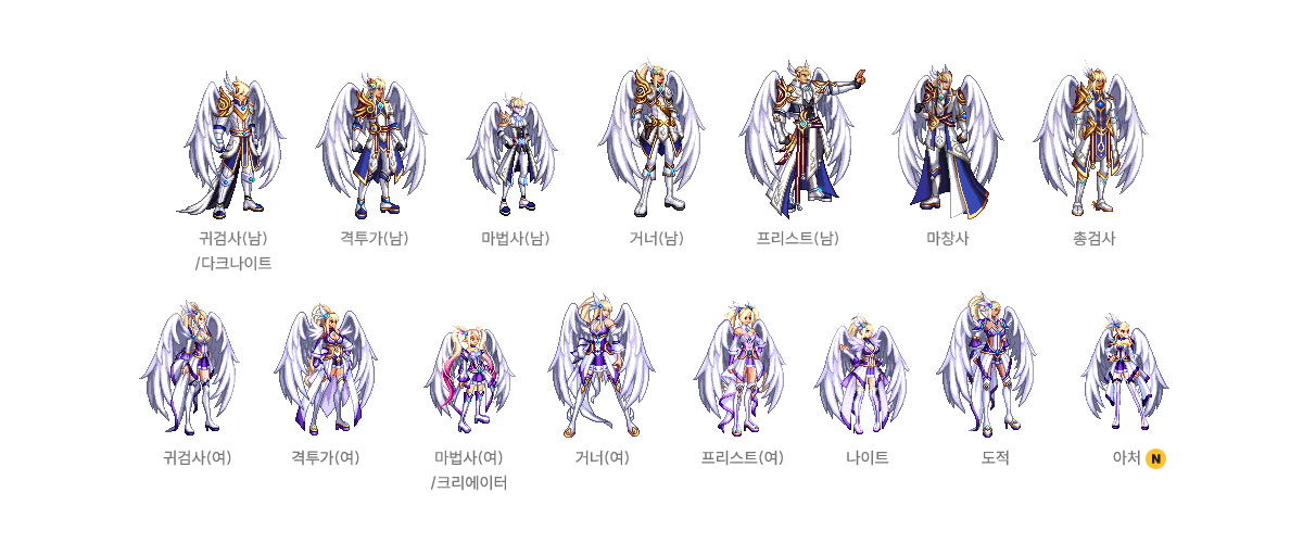 귀검사(남), 격투가(여), 거너(남), 마법사(여), 프리스트(남) - A/B 타입
