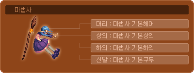+ 마법사 : 물리공격보다는 마법을 자유자재로 구사하는 케릭터입니다.