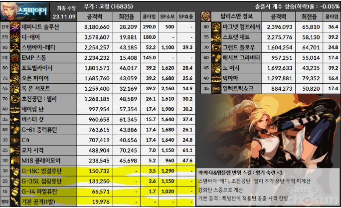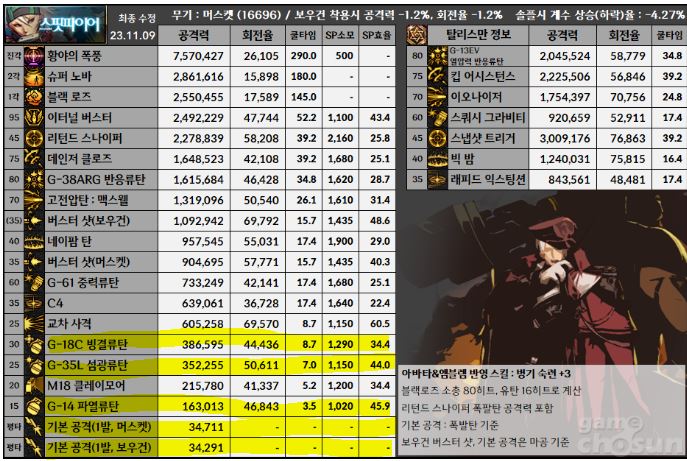 얼마나 류탄쪽에만 상향을 줬는지 그 자료를 보면 기본공격이 파열류탄 하나의 가치도 못하고 있습니다. (남스핏 기준)