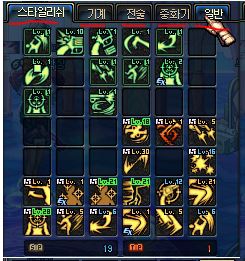 (여거너 추가 후 스킬트리 : 각각 스타일리쉬/기계/전술/중화기/일반)