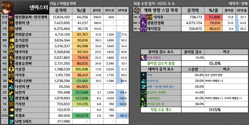 쿨감도 못받는 나선의 넨은 왜 누락인지?