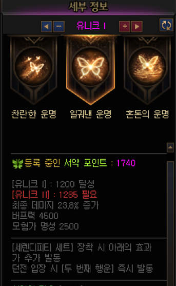 일궈낸 운명 유니크1 세렌세트 착용기준