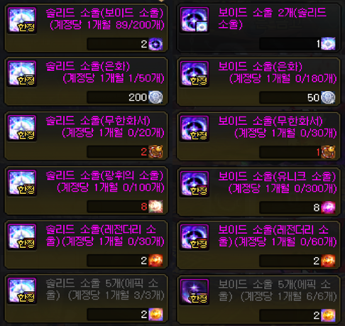 2) 솔리드 소울 삭제 및 중천 시즌 세트 장비에 초월, 항아리 구매에 걸려있는 보이드 소울 요구량 제거