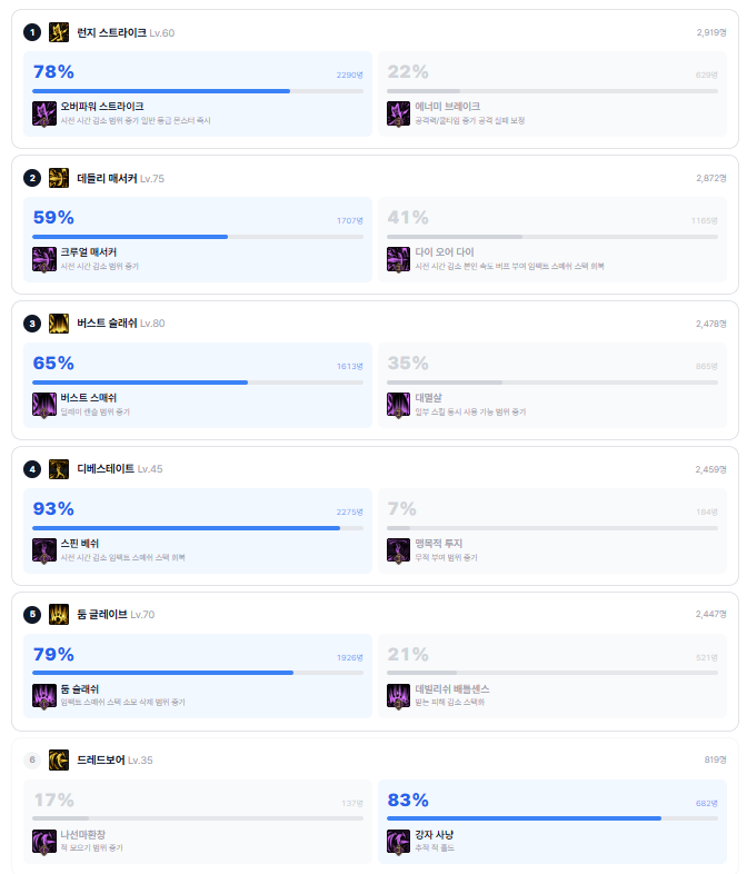 근데 여기서 마냥 개수가 많다고 OK가 아니라 유저들이 어떻게 스킬을 채용하느냐를 보셔야합니다.