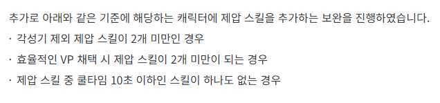위의 기준에따라 10초이내의 스킬인 크레센트에 제압력을 추가하는 것을 검토해보실 필요가 있다고 생각됩니다.