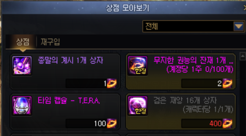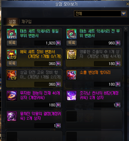 특히나 에픽/태초 결정의 소모값이 이전과 비교 했을 때 너무 과한 가격이 책정되었습니다