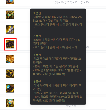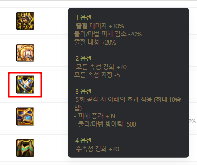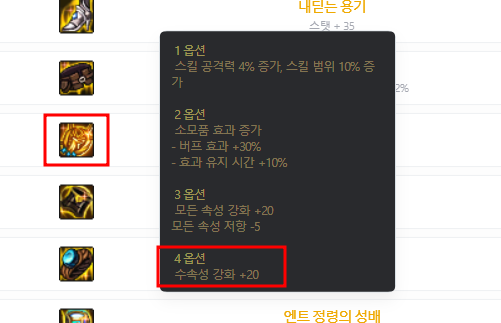 3옵션에 수속성 강화만 붙어있는 문제를 보완하기 위해 2옵션에 다른 속성강화 옵션이 추가되었습니다