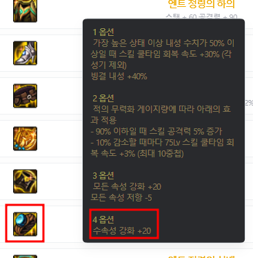 [자유를 수호하는 윙 숄더]에 속성강화 옵션이 빠진 것 같습니다