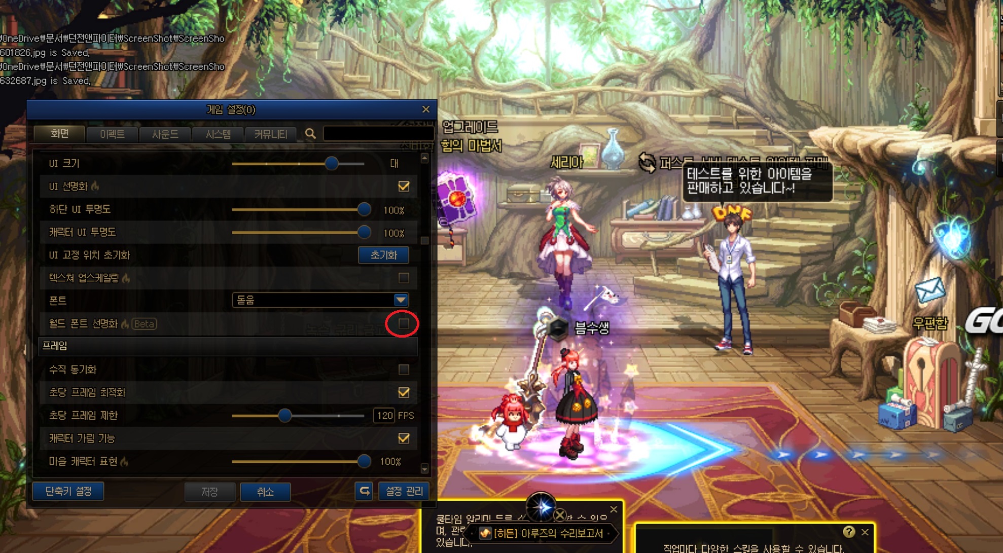 [인게임 인터페이스] 돋움 폰트 사용시에 월드 폰트 선명화 옵션을 킨경우 폰트가 깨집니다
