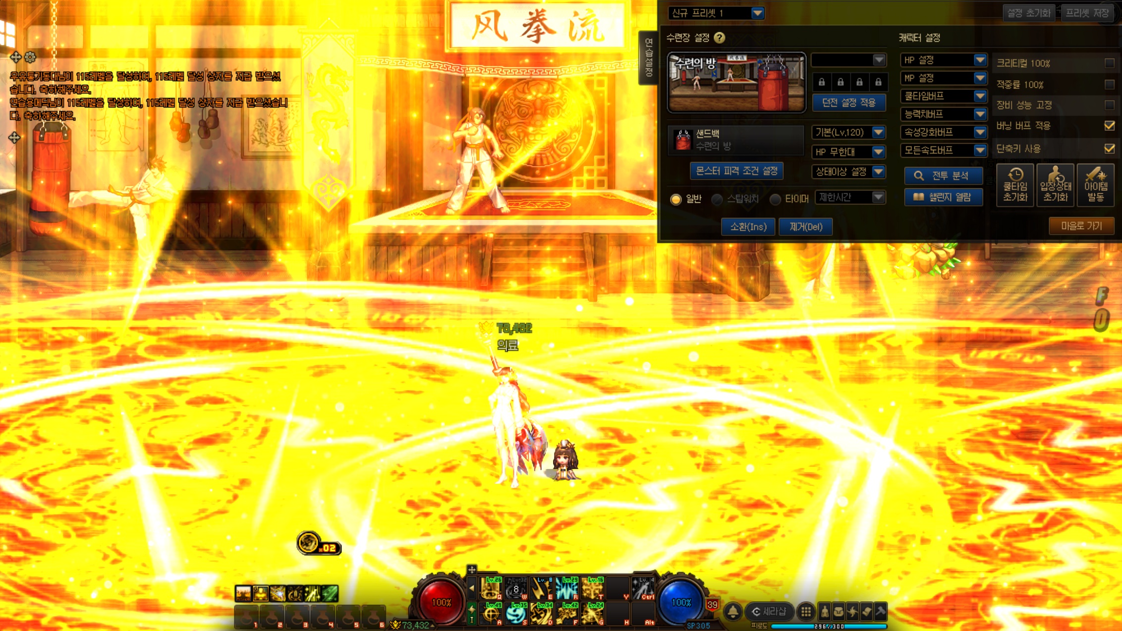 수련의 방 및 일반던전 일렁이는 군도에서 실험 결과