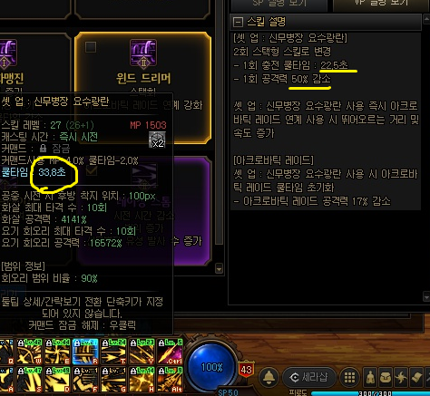 쿨타임 33.8초짜리를 무려 11.2초나 늘려서 45초로 만드는대신