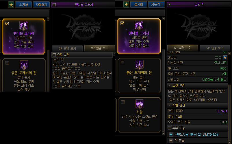 스핀 킥(맨디블 크러셔) - 적 홀드 추가 반영