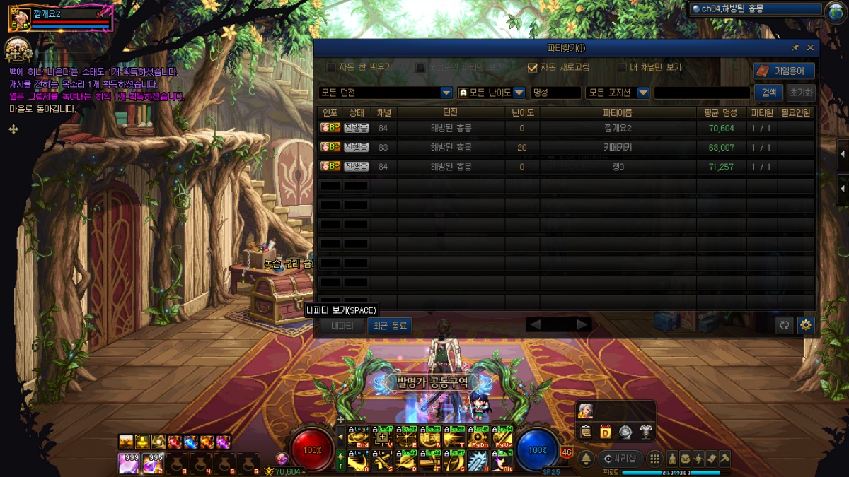 해방된 흉몽 파티등록 후 파티찾기창에서 내파티 버튼이 활성화되지 않습니다(색상오류 ,마우스클릭 불가), 스페이스바로 내파티 보기는 가능합니다.