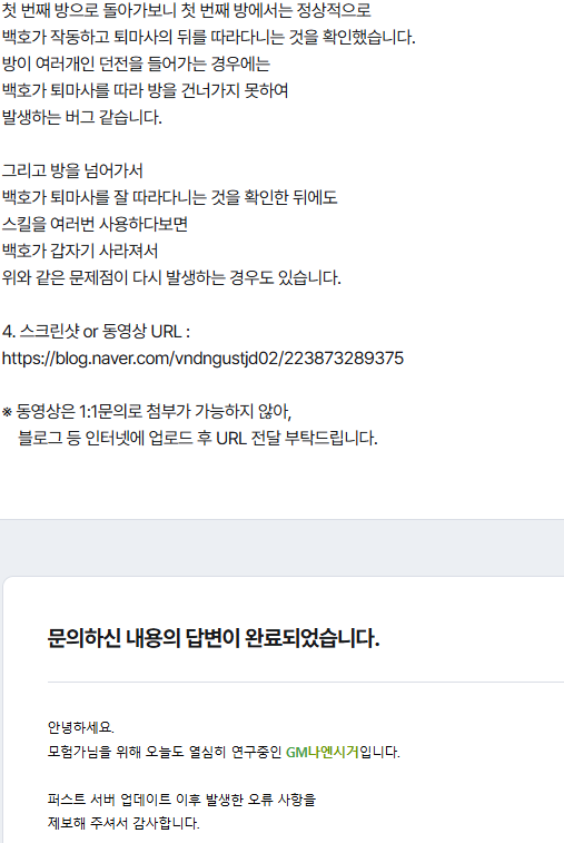 버그 제보 게시판이 따로 있는지 알지 못했고 1:1 문의에서 버그 제보를 하면 자동으로 응모되는 줄 착각하고 있었습니다..ㅠ