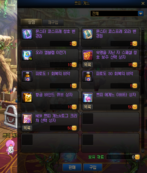 세리아방 안에 NPC "쁘띠 게느" 를 통해 이것저것 구입할수 있는데요.