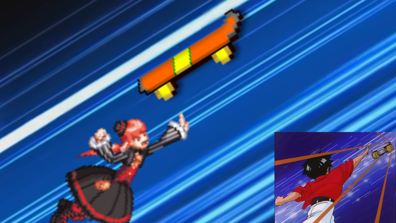 ▲ 거대 그랑죠에 탑승하러 가는 솬미짱. 보드 도트 퀄리티가 ㄹㅇ구려서 고퀄 솬미짱 도트와 심히 비교된다