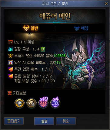 | 파티 생성창 |