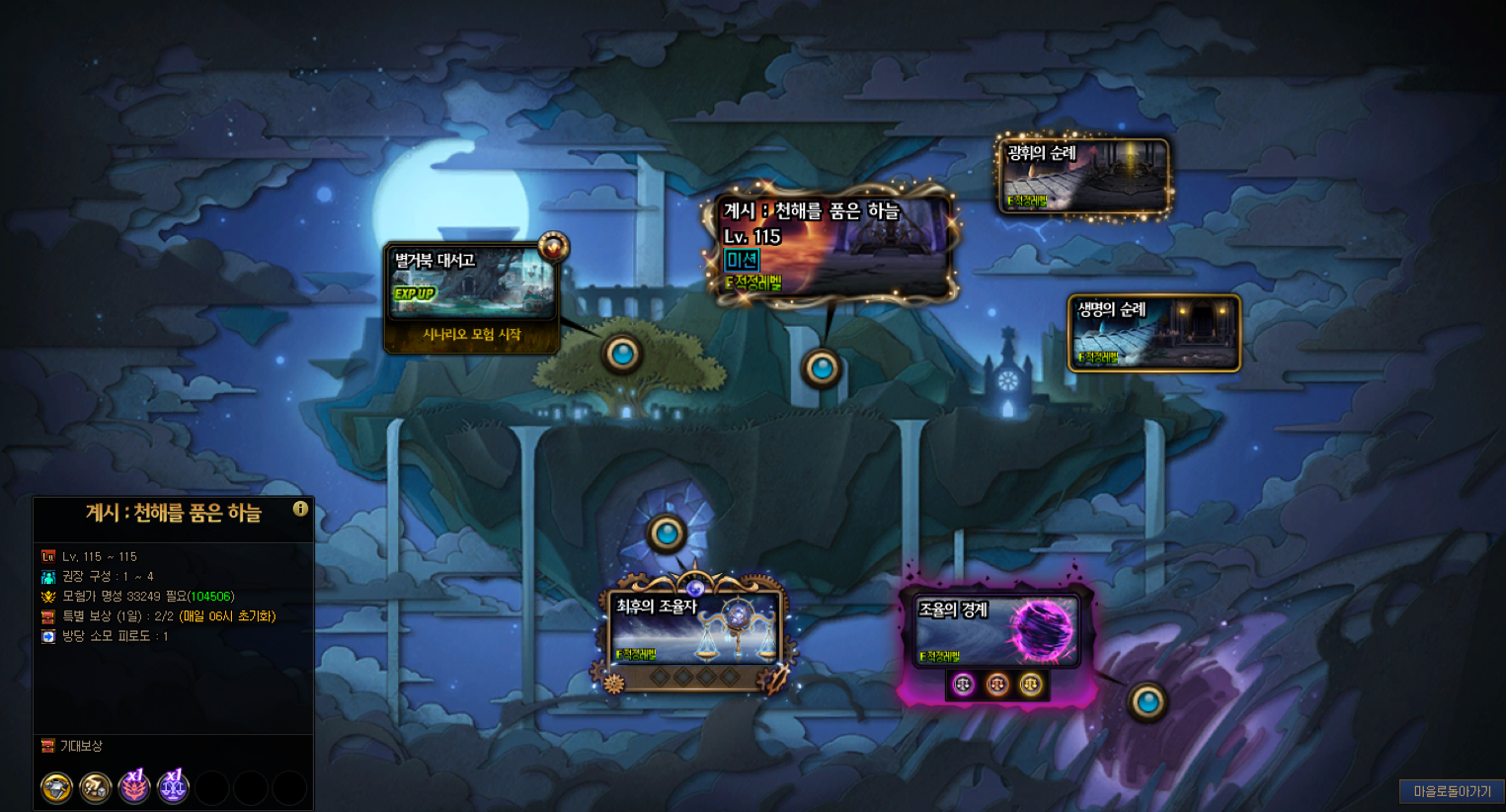 - 115레벨에 도달하지 못했다면 천해천 계시 던전 미션은 등장하지 않습니다.