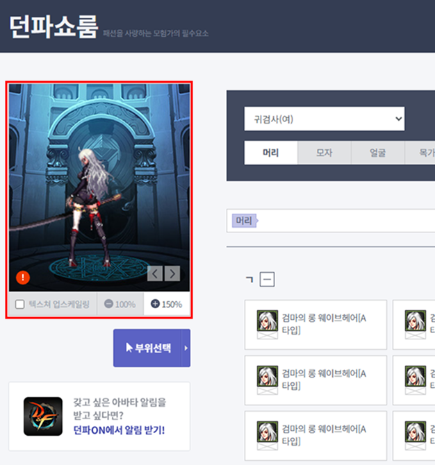 던파쇼룸(PC/던파ON)의 귀검사(여) 미리보기에 아래와 같이 뒷모습 포즈가 추가됩니다.