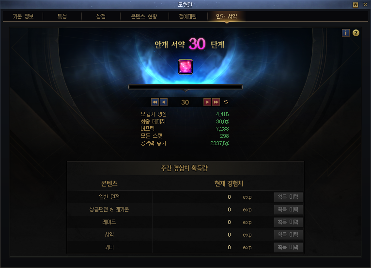 - 서약 탭은 115레벨부터 사용 가능합니다.
