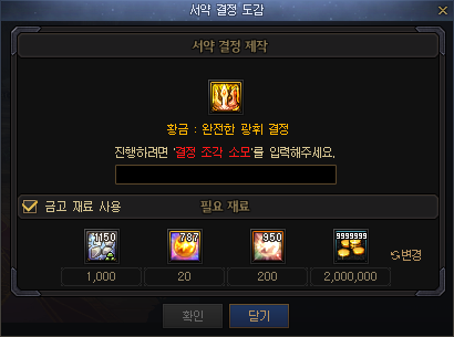 - 소울을 소모하여 서약 결정을 획득할 수 있는 아이템입니다.