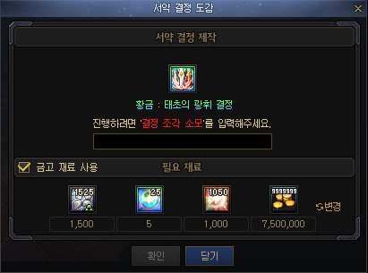 - 서약 결정 도감의 우측 상단 버튼 클릭 시 교환 창이 오픈됩니다.