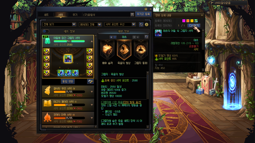 무기고 - 서약탭에서 아이템 상세정보가 보이지 않는 현상이 수정됩니다.